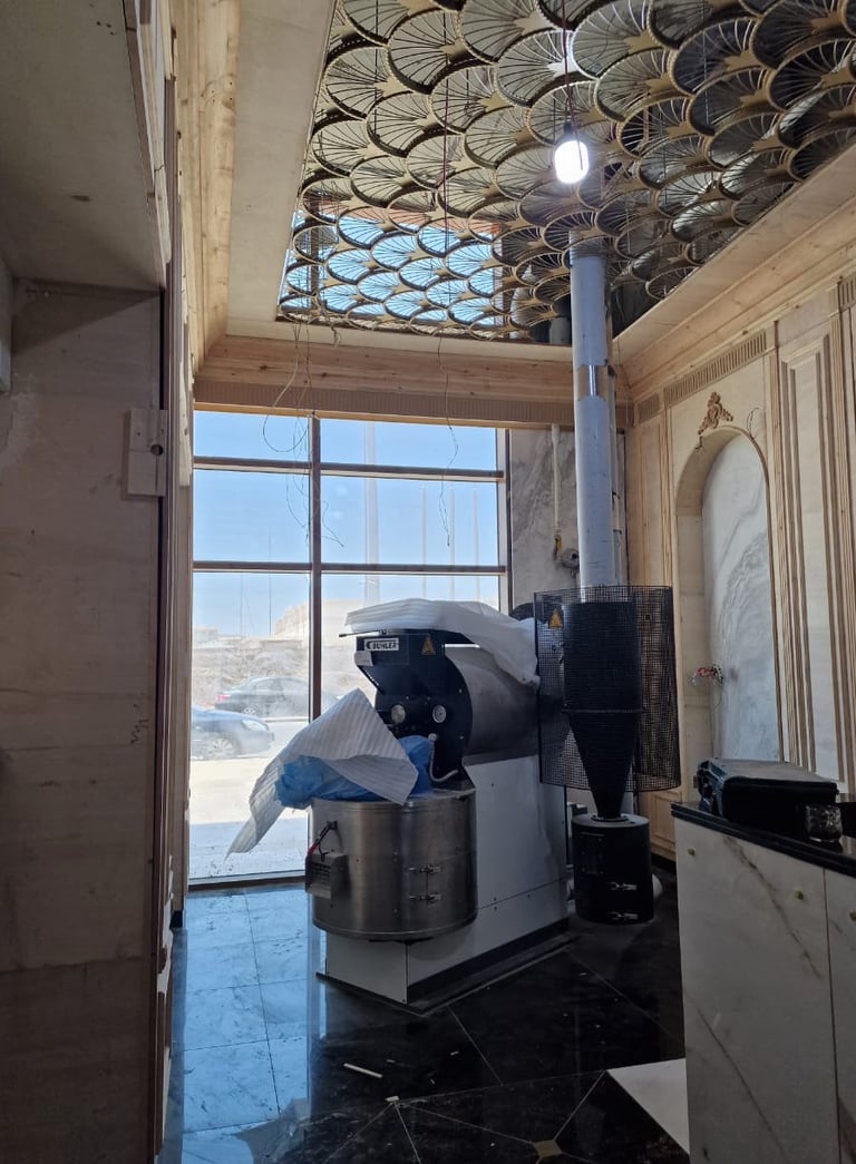 Moreover, dedicating a special zone for the homogeneous coffee roaster visible to the coffeeshop customers.